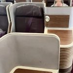 飞机商务舱是流行的反鱼骨布局,隐私性和空间都得到了极大的保证。