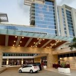 时间切换到入住当天的晚上,于是我们就来Checkin了,感觉酒店大门在晚上的时候看起来还是好看很多的。
