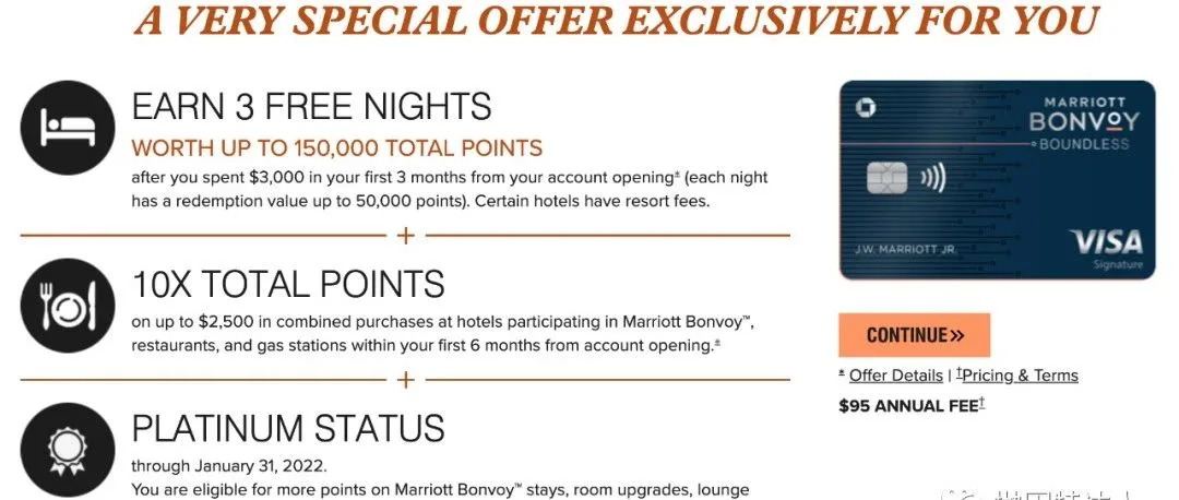 开卡奖励:开卡首三个月消费$4000获得5张Hyatt等级4免房券,需要注意免房券有一年有效期,一张C4免房券价值一般至少可以用到200美元+,所以这个开卡奖励收益至少会有1000美元+