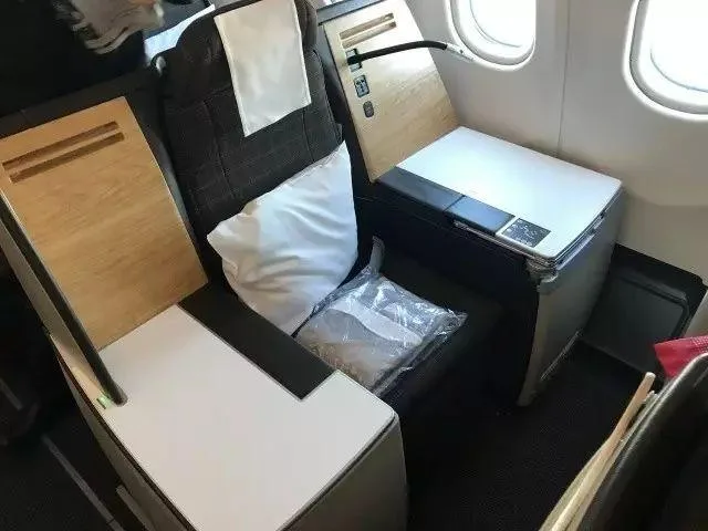 这次体验的头等舱是这款飞机上最好的位置,总共有10个座位,1-1分布在前5排。这款机型的商务舱是什么呢?就是位于头等舱后面2-2分布的平躺座位,我们早在2019年体验过。