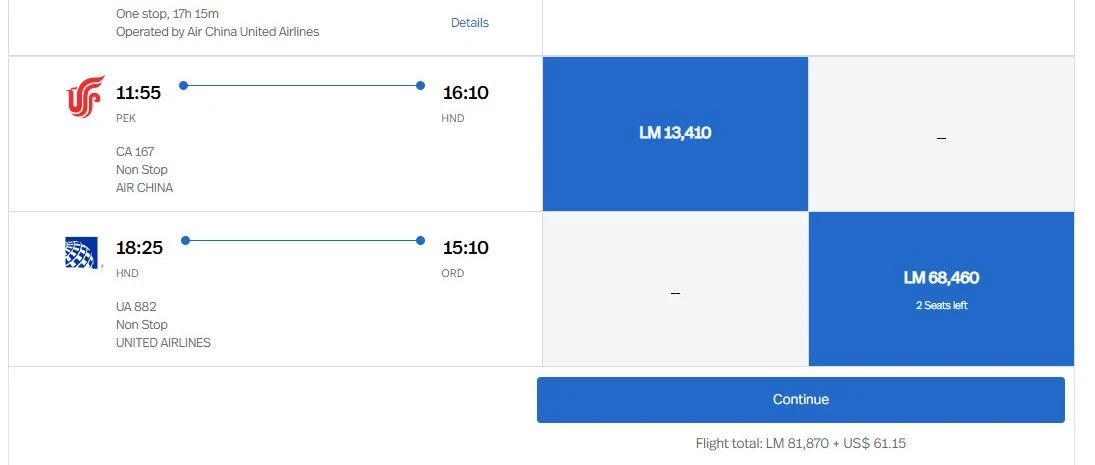 1月赴美旺季到了,身边不少朋友都在研究如何拿下最便宜的机票回美国了,其中有朋友就查到了一个很不错的兑换就是使用哥伦比亚航空里程兑换一些混舱行程了,例如下面这个。 短途国航经济 + ... 阅读更多