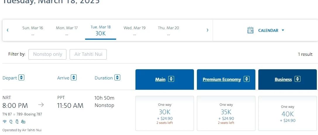 商务舱躺飞大溪地(双向均适用),单程仅需40K里程 / 800美元,一定要掌握这个技巧