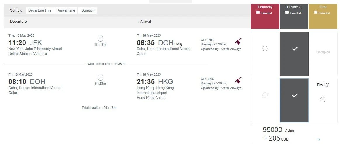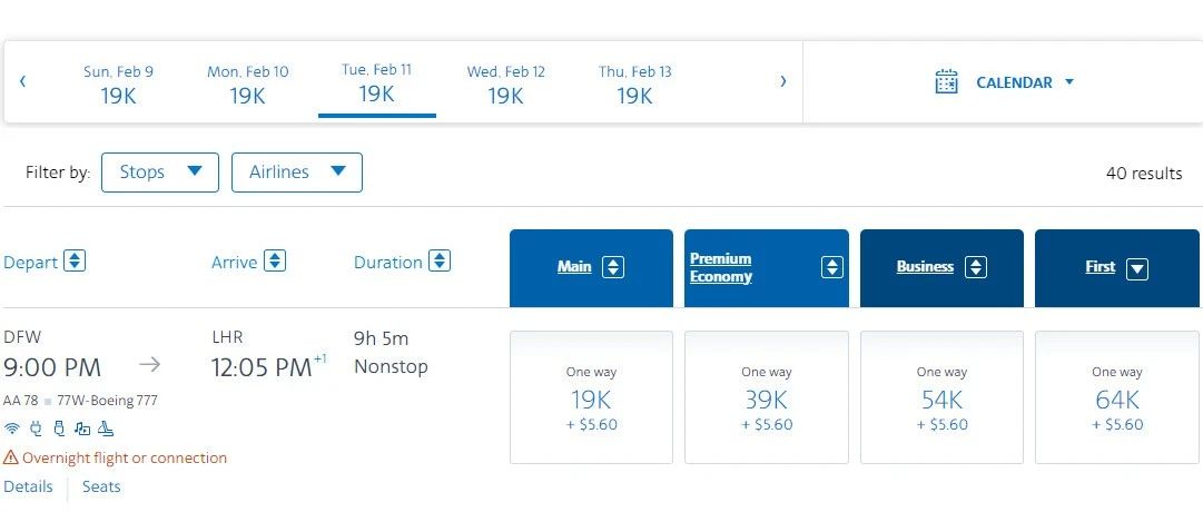 美国航空(American Airlines)64K点数兑换跨洋头等舱,从今年夏天至明年春天都有票,还可以全美联运+免费退改