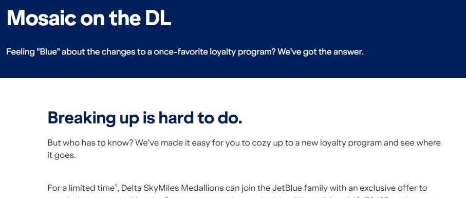 我们在?9月26日的推送给大家介绍了阿拉斯加航空直接开始挖达美墙角,给大家送上了针对达美航空高级会员的超级慷慨匹配活动,没想到马上有航司跟上,那就是今天介绍的JetBlue推出的会 ... 阅读更多