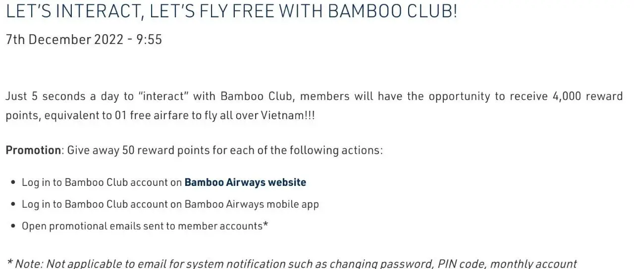 新贵航司越竹航空(Bamboo Airways)之前给大家介绍过几次,新航司的好处就是总有一些吸引新会员的福利,而最近他们又推出了一波送点数的福利,获取方式非常简单。 活动内容 ... 阅读更多