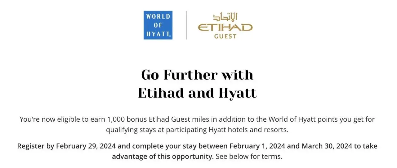 凯悦有个新活动,是和阿提哈德航空合作的,大家赶快注册吧。   活动内容:每完成一个有效住宿可以获得1000点啊提哈德航空里程奖励,需要提前注册才能参与此活动 有效注册时间:2024 ... 阅读更多