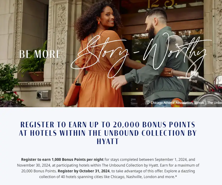 凯悦联名卡用户促销活动,入住Unbound Collection有额外奖励