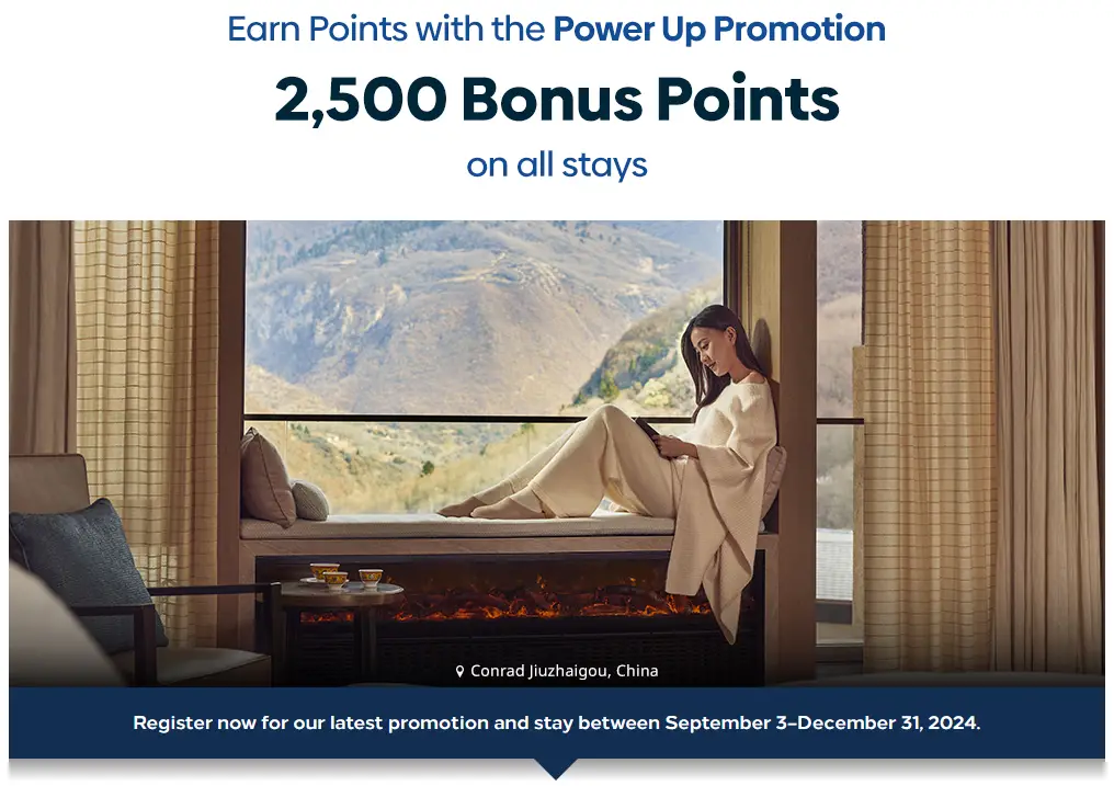 每次入住2500点数奖励,希尔顿2024 Q4季度促销活动来了