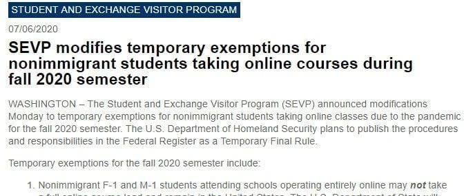 【禁令已撤除!】突发新政:若在下学期选择纯网课教学,在美留学生将要强制离境