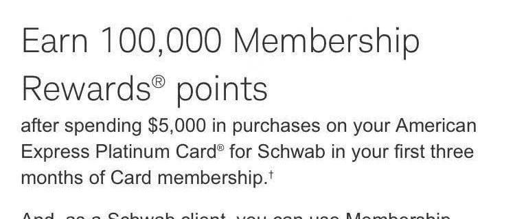 中大奖可获得中美商务舱往返机票 – 出现了Amex Platinum For Schwab的100K点数定向奖励