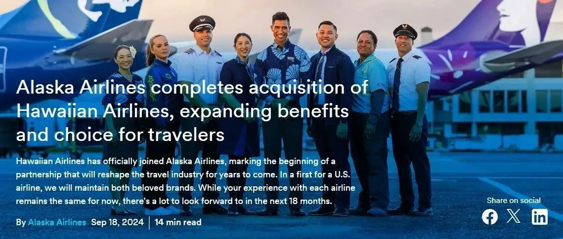 阿拉斯加航空(Alaska Airlines)收购夏威夷航空(Hawaiian Airlines)获批了!还有很多好消息!