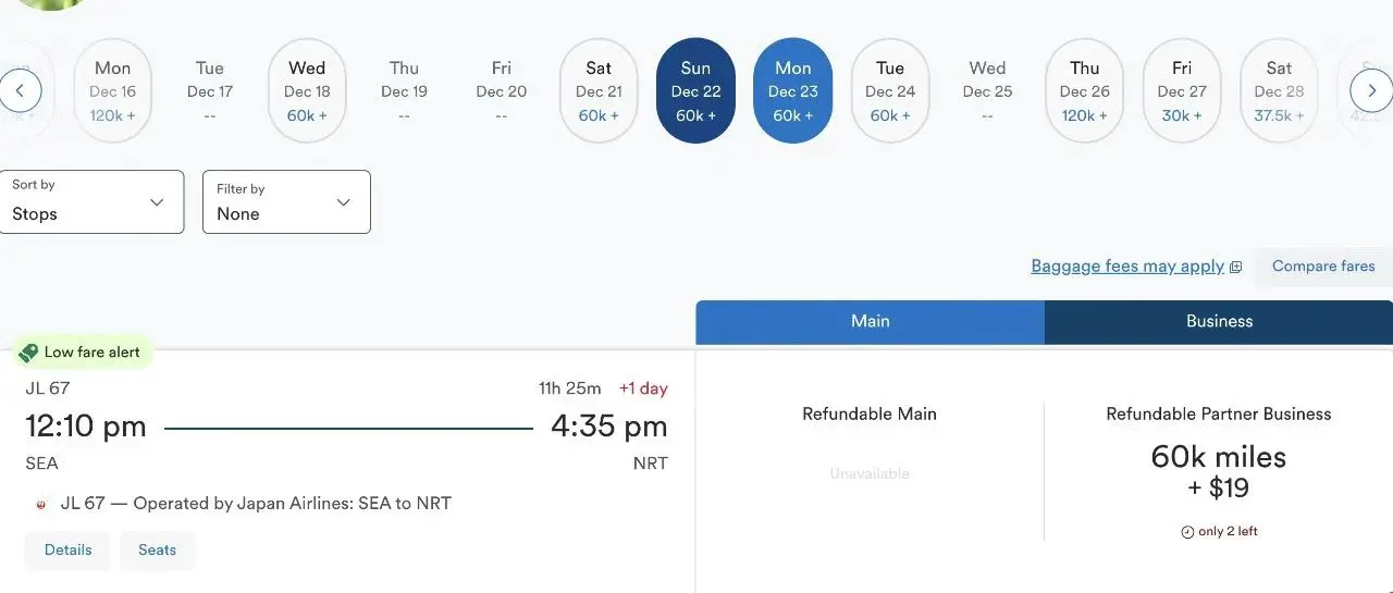 日航大狂欢还有后续!又放票了!还是最低60K点数可以拿下,寒假和过年都有不错的票