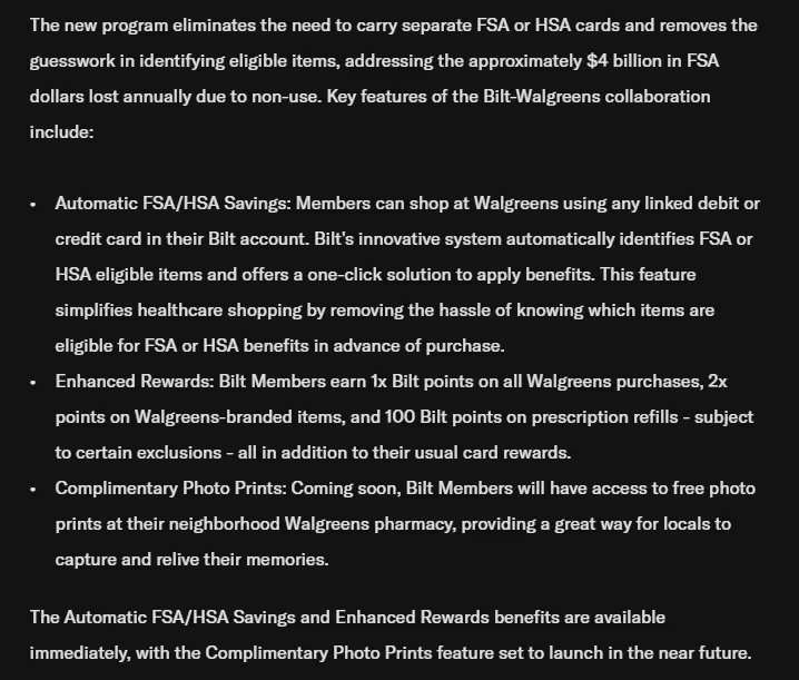 Bilt新的一周第一天来大新闻了——和Walgreens推出合作了,最主要的核心内容有这三个。 1.自动FSA/HSA报销:Bilt用户在Walgreens使用Bil ... 阅读更多