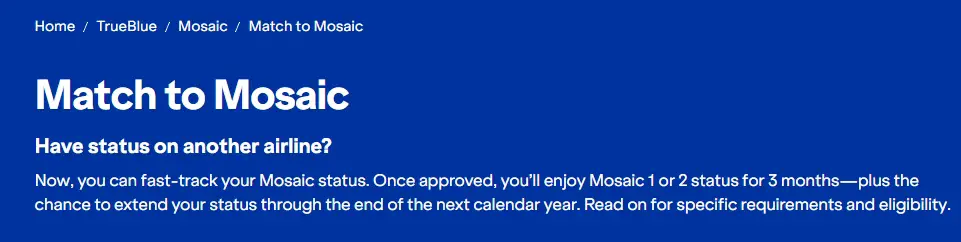 JetBlue会籍匹配 + 挑战活动来了,大家可以进入JetBlue官网了解匹配细节。 对应的匹配关系如下,美国四大航AS、AA、DL、UA高级会员可以匹配至Mosa ... 阅读更多