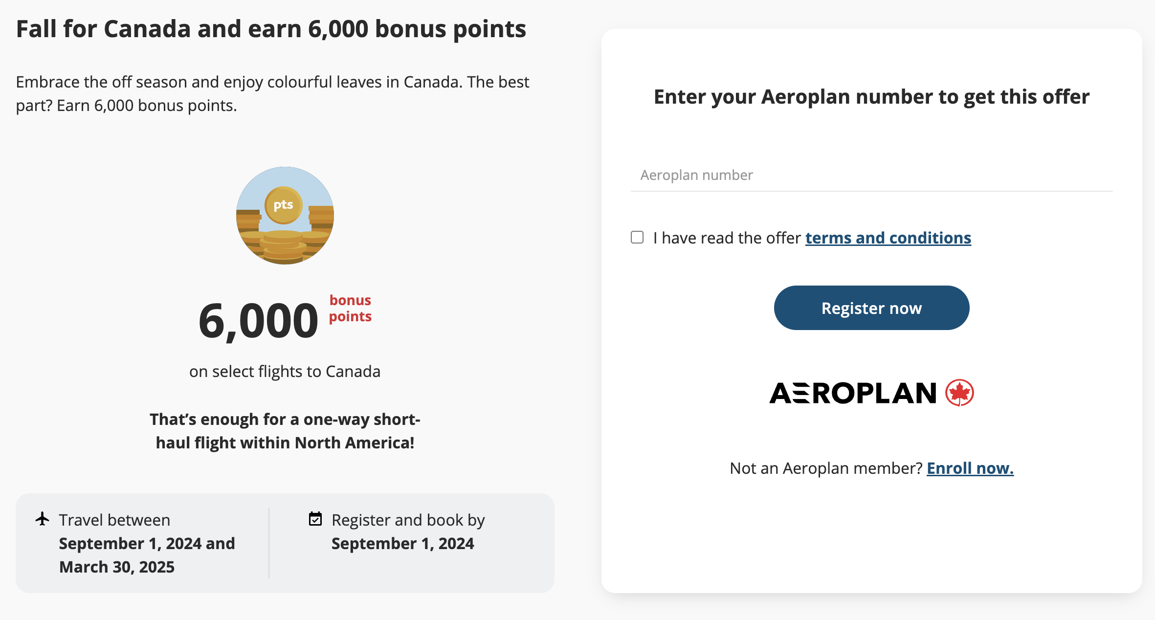 加航现在有个不错的促销活动——Earn 6,000 bonus Aeroplan points on your fall trip to Canada。 有效预定时间 ... 阅读更多