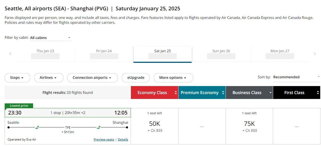 国泰中美直航大放票,58K点数可拿下商务舱,旺季大量时间也有票