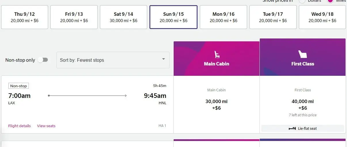33K点数兑换平躺商务躺飞夏威夷,最近的票很多,还有机会体验套间新舱