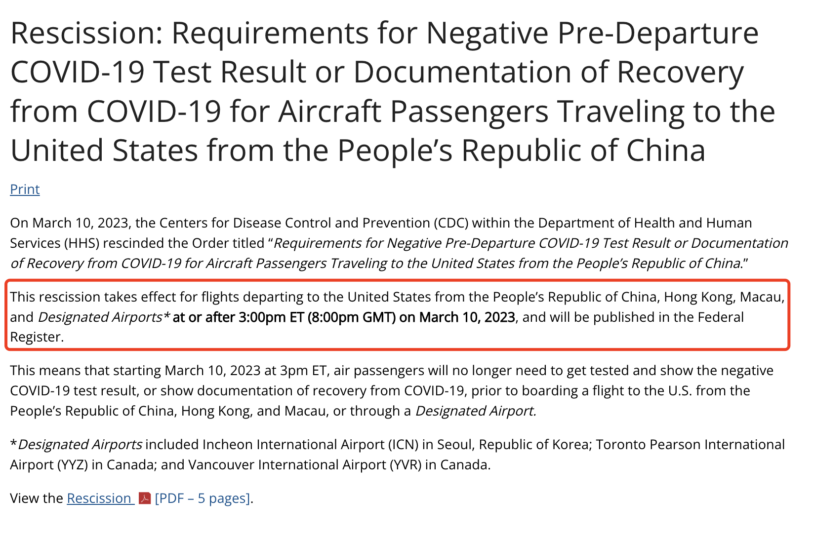 【2023/03/10更新】根据美国CDC官网的公告最新更新,赴美行前核酸检测要求已于美东时间2023年3月10日下午3点(北京时间2023年3月11日凌晨4点)结束,所以自华赴美 ... 阅读更多